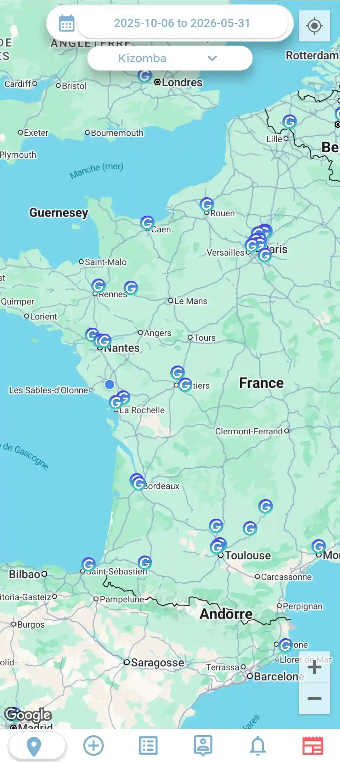 Grâce à la carte interactive de GROUV’IT, trouver des événements de danse n’a jamais été aussi simple et rapide. Vous pouvez explorer tous les événements de danse à proximité, qu’il s’agisse de cours de salsa, de soirées de hip-hop, de festivals de kizomba ou d’autres événements dansants, et ce, partout où vous vous trouvez. Il vous suffit de zoomer sur la carte pour découvrir, en temps réel, les événements disponibles dans votre zone géographique, qu’ils soient à quelques pas de chez vous ou dans une autre ville.