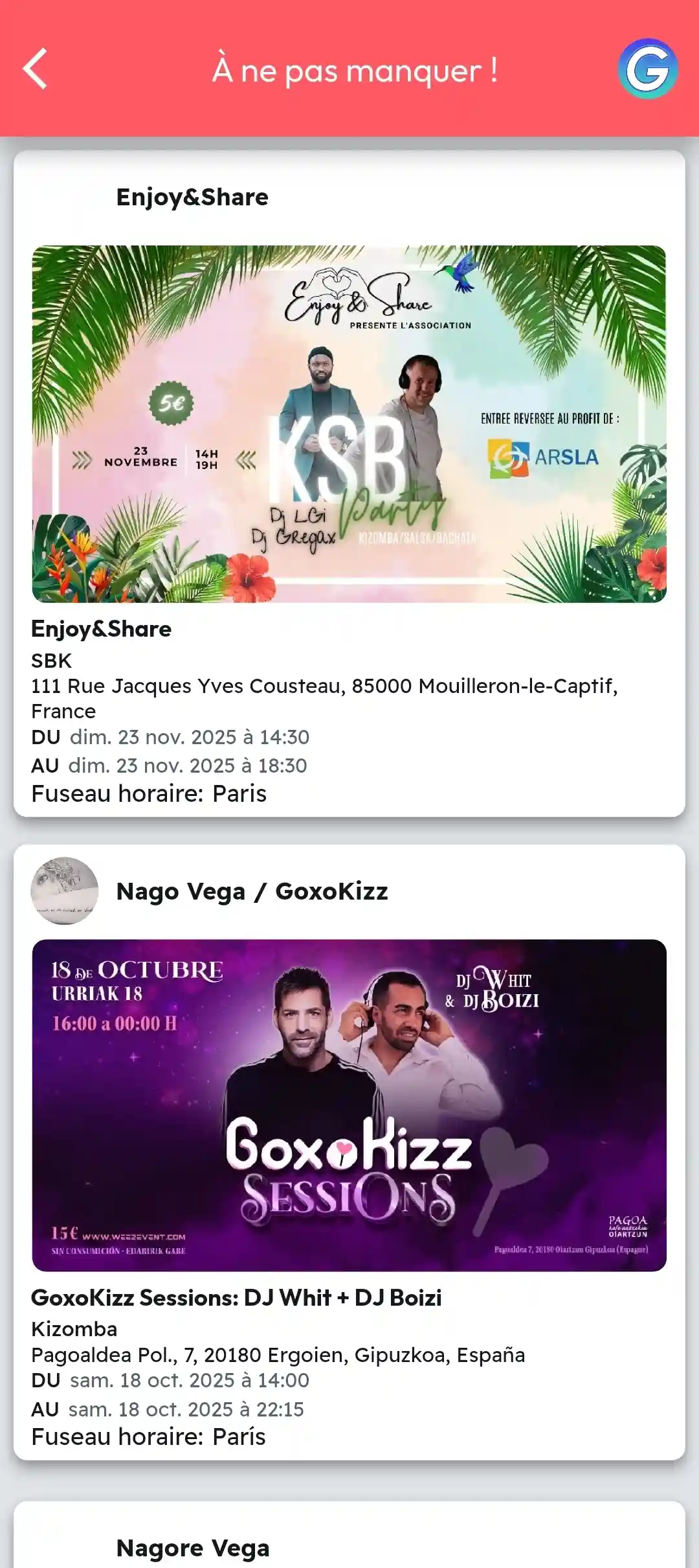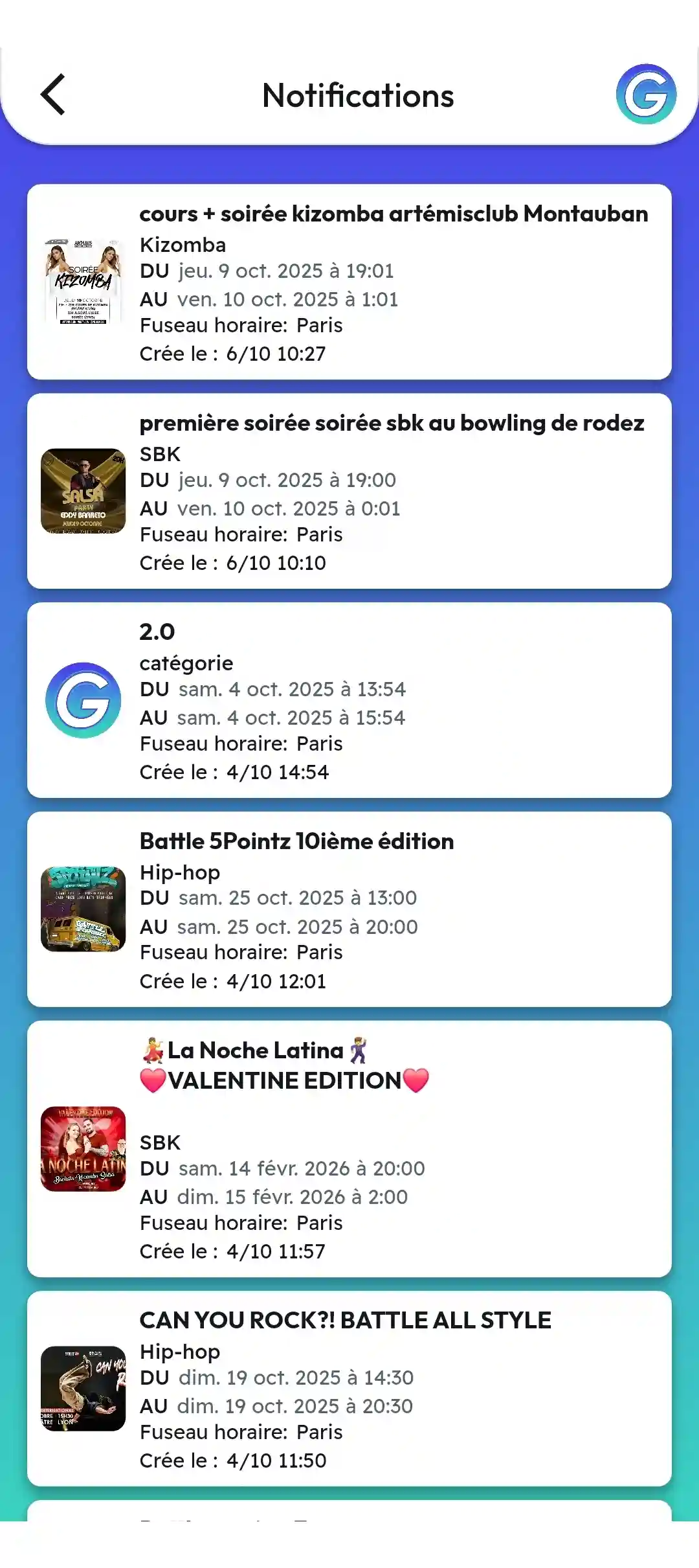 Trouvez facilement des cours, des soirées, ou des festivals autour de vous, et restez informé des nouveautés grâce à des notifications en temps réel.